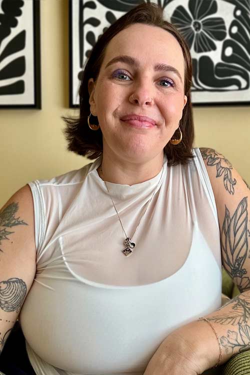When I’m not in session, you might find me crafting (yes, I once built a haunted dollhouse), hiking with my dogs, or laughing at life’s small absurdities. I hold authenticity, curiosity, and balance as core values, both in and out of the therapy room.